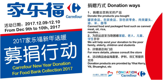 2017年12月9、10日,家乐福“食品银行”公益捐助活动将在哈尔滨、沈阳、大连三地10家门店启动!届时,家乐福活动门店将在相应柜台、结账处开辟“食品银行”慈善专区,与公益组织联合将募捐到的物资赠给困难群体。