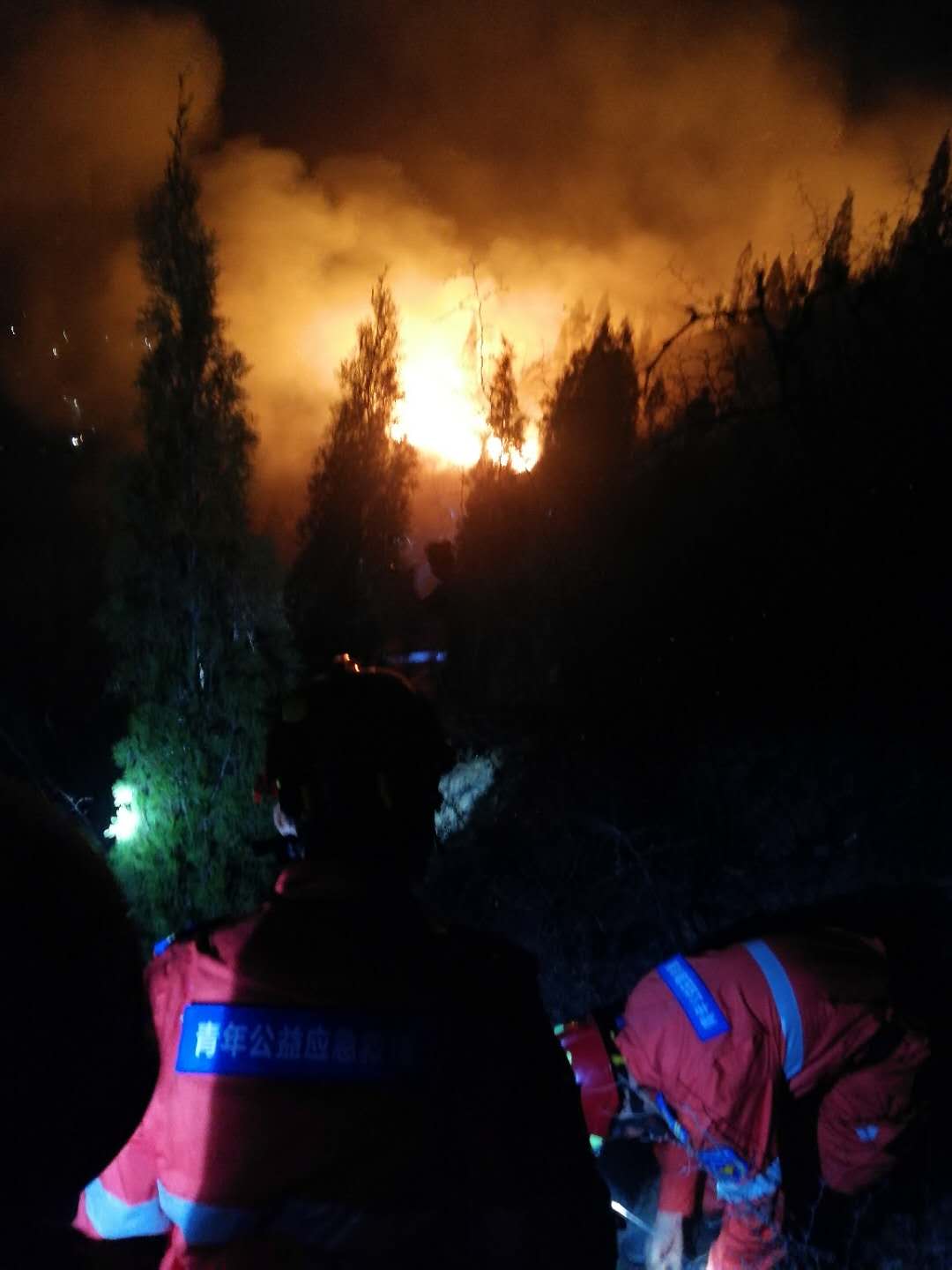 18:15分,火情就是命令,绛县大队韩瑞峰紧急通知召回正在工作的应急救援队队员王彦惠、杨方仁(救援队队员方槐根因媳妇有身孕特殊情况需要照顾,未批准前往),虽然刚发生的消防队员事故,但队员依然迅速返回家中,收拾整理队服及所需物品并做好上山支援准备