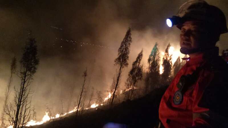 22:20分,队员携带对讲机赶到救火现场迅速加入支援……往山上运送灭火弹药、食品和水,并加入现场灭火,在救火现场对讲机随时与景鹏飞、李鹏程、许瑞飞等本次救援活动指挥、副总指挥联系:汇报火情,与山中、山下及时沟通所需物品、物料