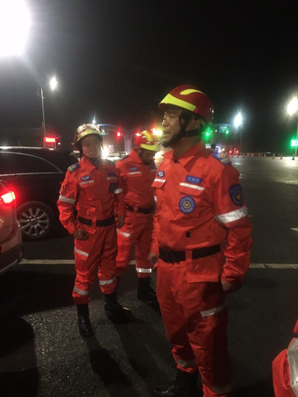 4:02分绛县应急救援队队员返回到绛县高速路口,因疲乏劳累,为保证行车安全,就地车内眯一会