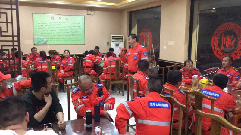 1:44分所有救援队队员终于有时间吃饭饭啦队员现在才发现山上的酸枣树给大家身上留了很多纪念,喝水的同时给自己身上“挑刺”