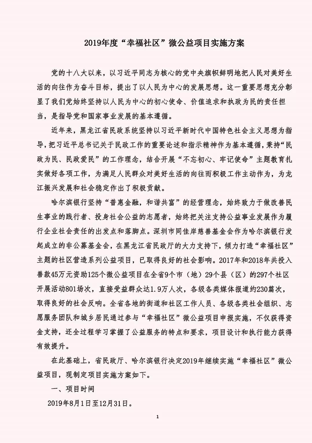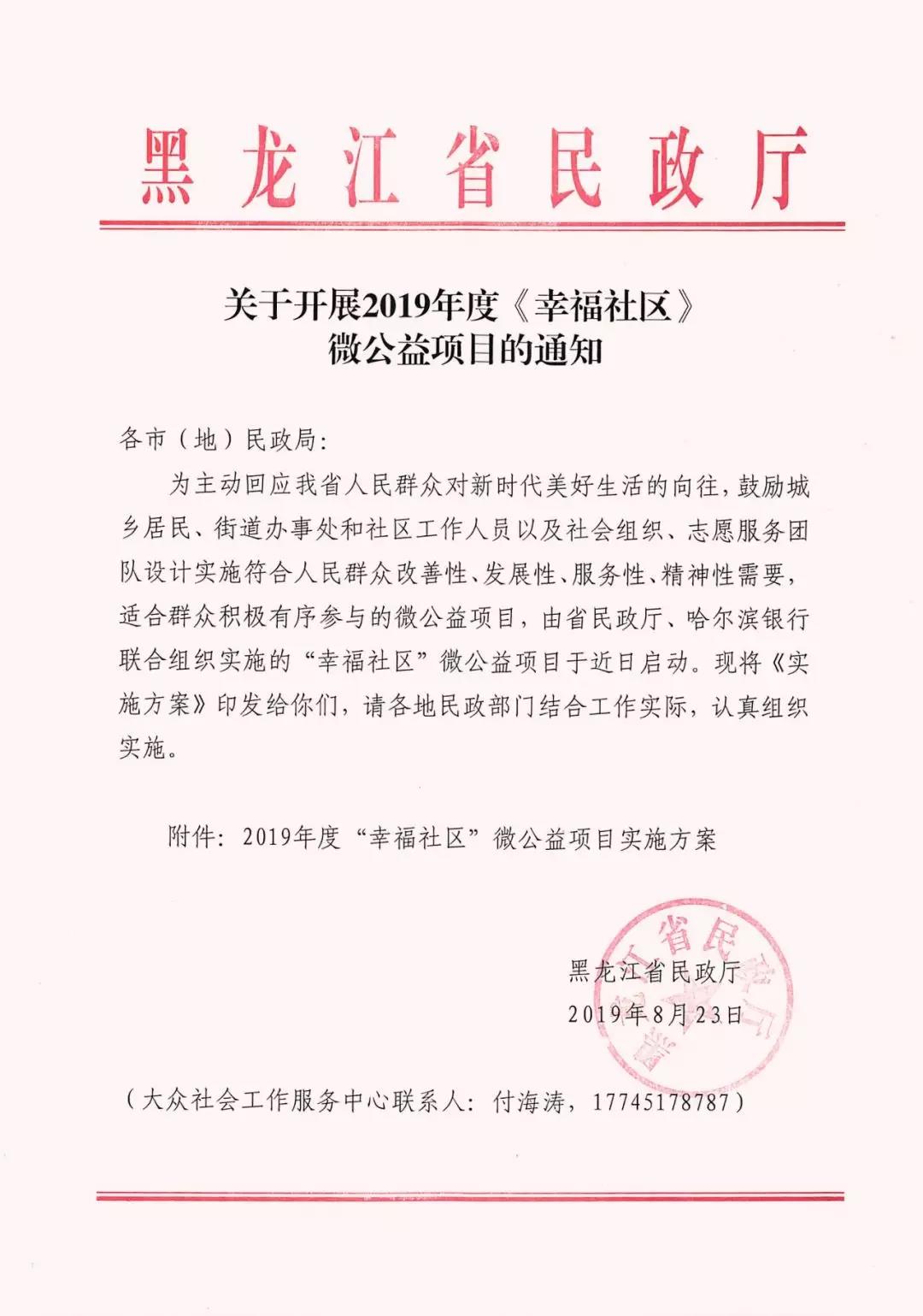 哈行 同佳岸资助 | 2019“幸福社区”微公益项目全省征集中!