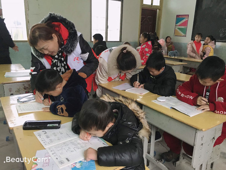孩子们正在认真的写作业,老师和志愿者也很认真的去教孩子,并且鼓励孩子们 好好学习,势力做个好孩子
