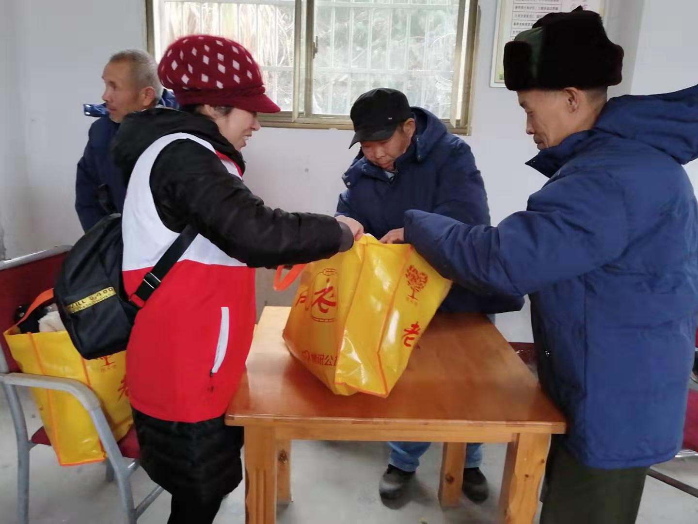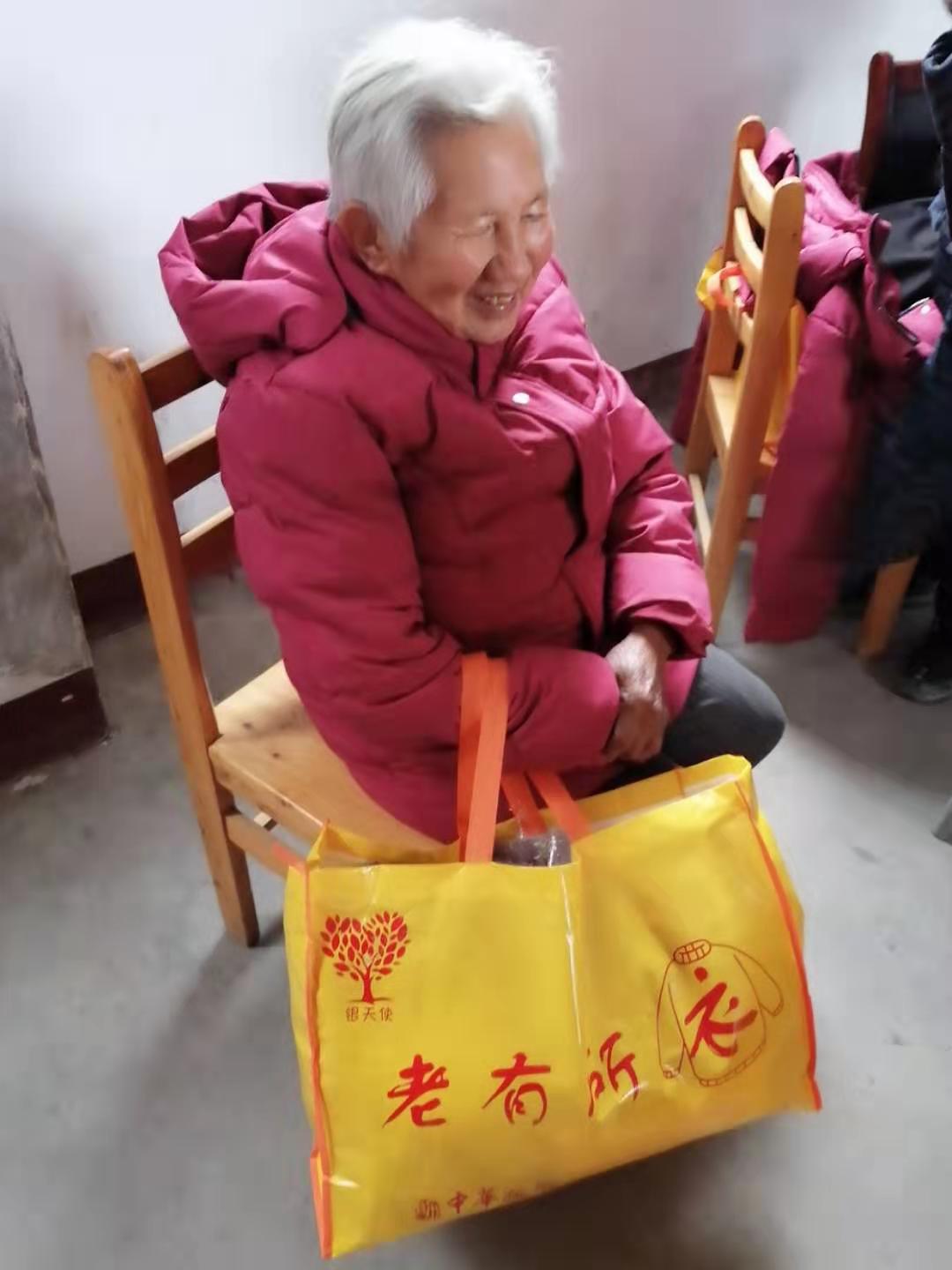 志愿者们每到一个村子,村委会热情接待,当志愿者把棉衣等物品送到老人手中时,老人们满脸的感激之情溢于言表。行动不便的老人,棉衣由村干部亲自送达。